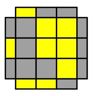 (R’ U’ F) U (R U’ R’) F’ R (upright P shape & a colored edge on L-face)